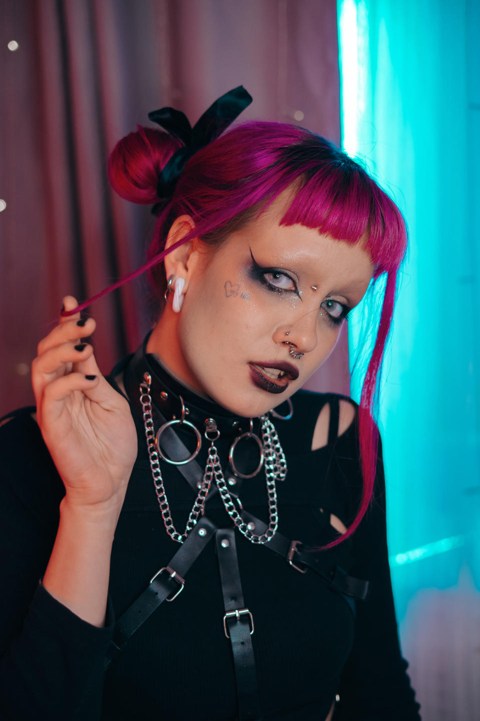 I’m that pink-haired dream with a sparkle in her eye and a little mischief in her smile. Piercings, bold makeup, and a soft heart hiding under all this color – that’s me. I might come off a little shy at first, but give me a minute and we’ll be laughing like old friends. I love standing out, being real, and connecting with people who feel the same