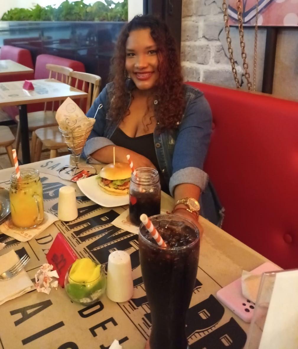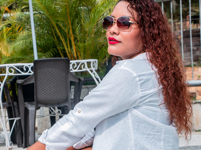 Ich liebe mein lockiges Haar, ich liebe alles daran, die sanfte Bewegung, die verschiedenen Frisuren, die ich sehr mag, eine andere, die ich auch an mir mag, sind meine braunen Augen und meine provokanten Lippen, die rote Farbe definiert mich, da ich mich beim Tragen super sinnlich fühle, Parfüm ist auch eine meiner Freuden, die ich sehr genieße, Aber ich denke darüber nach, meine Haarfarbe zu ändern und ein wenig blond zu werden, es ist ein Wunsch, den ich habe, aber ich traue mich immer noch nicht, mich zu ändern