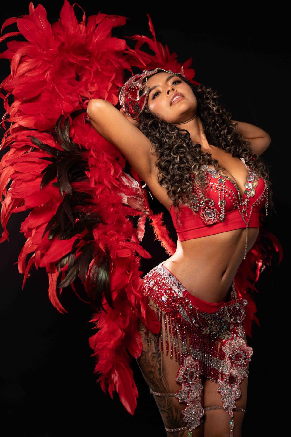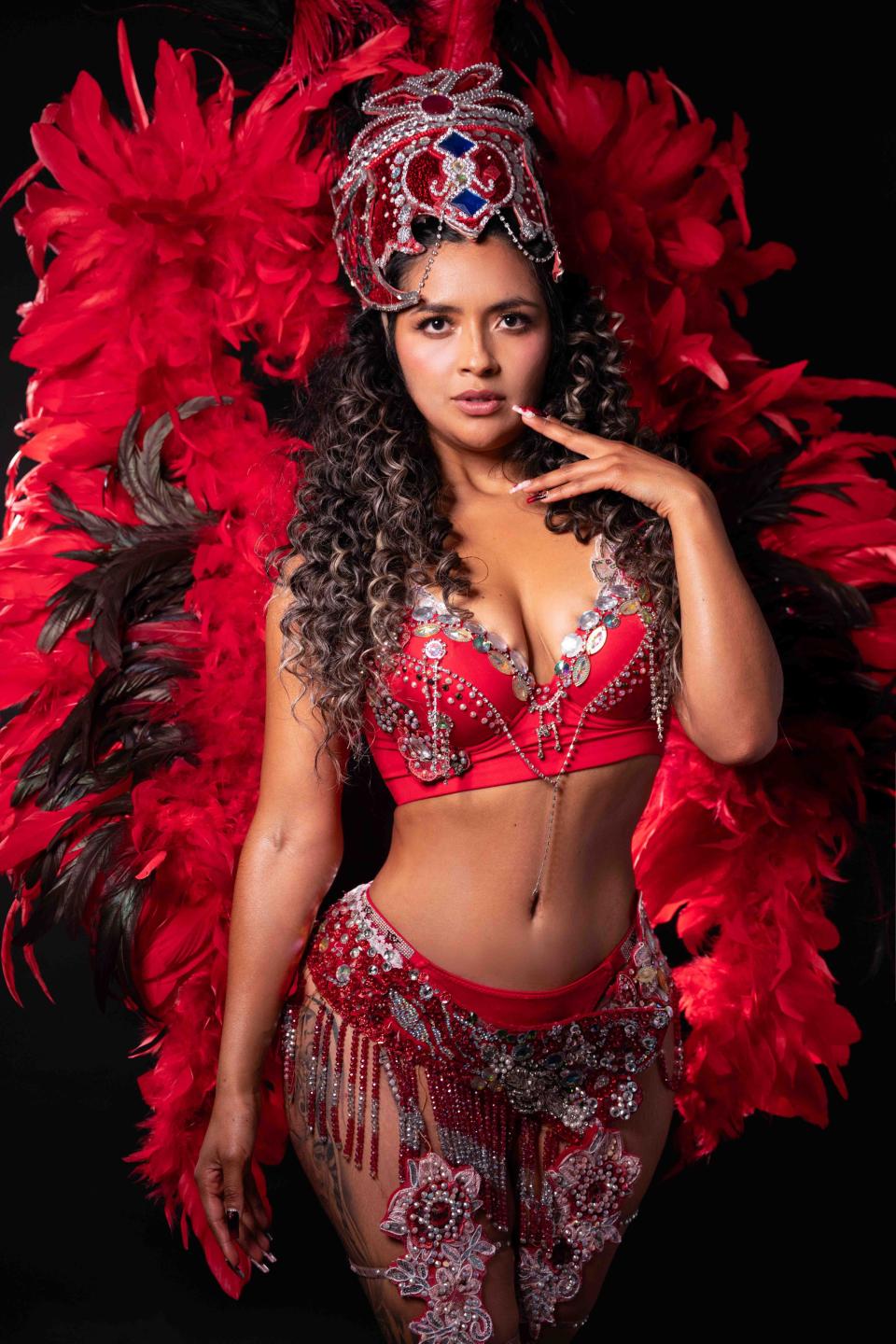 Ich bin eine kolumbianische Tänzerin, lachend und flirtend, eine erwachsene Frau, die es genießt, ein Lächeln hervorzurufen. Und freche Gedanken. Ich liebe es, meine Hüften im Takt der Musik zu bewegen und zu sehen, wie deine Augen mir folgen, während ich mit meinen Haaren und meinem Lächeln spiele.
