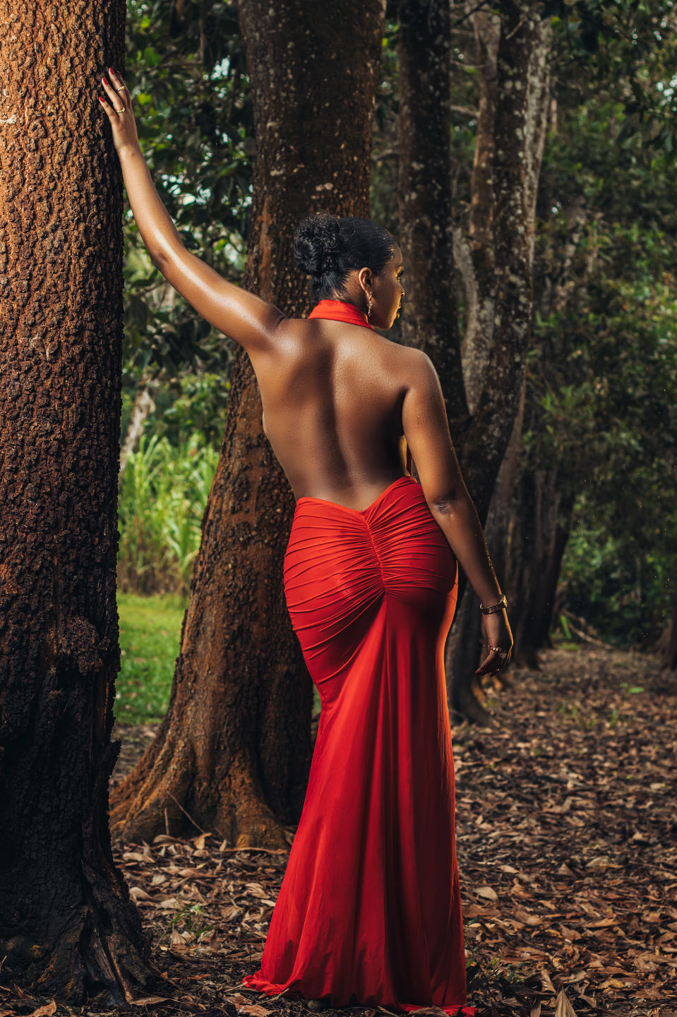 In the most intimate corner of nature, where the air is fresh and the whisper of the wind caresses the skin, there is a woman whose beauty seems to have been sculpted by the hands of the universe.. Every step you take in this paradise of leaves and wild flowers is a dance of grace and sensuality. A masterpiece of Mother Earth, its body flows in harmony with the environment. The gentle curves of her hips resemble hills rising in the distance, while her porcelain skin shines with a natural glow, like sunlight filtering through the branches of the trees.. As he walks, he awakens life around him. Birds sing their songs in his honor and butterflies dance around him as if they were his playmates. Trees extend their branches towards her in greeting, recognizing the harmony between this creature and the natural world around her.. She embodies the essence of beauty in its purest and truest form, a human being in harmony with the earth, a reminder of the wonders of nature and the magnificence of life at its highest expression..