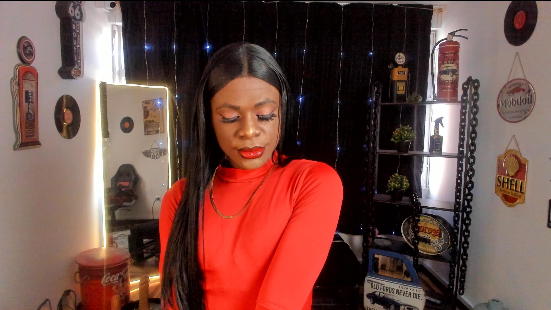 I love showing it off, shaking it, spreading it wide open and watching you lose control just by imagining it wrapped around you. Every move of my hips is pure lust, because I know exactly how to make you hard just by watching me. Between my legs, I hide my greatest treasure: a thick, rock-hard cock, ready to drive you crazy.