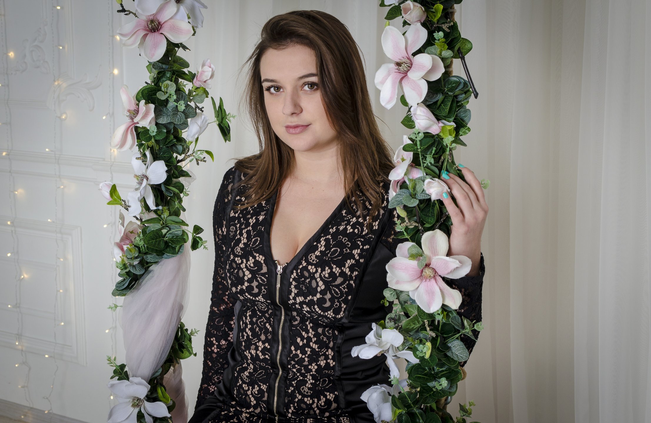 Agradable, morena inteligente listo para la comunicación activa y no solo!