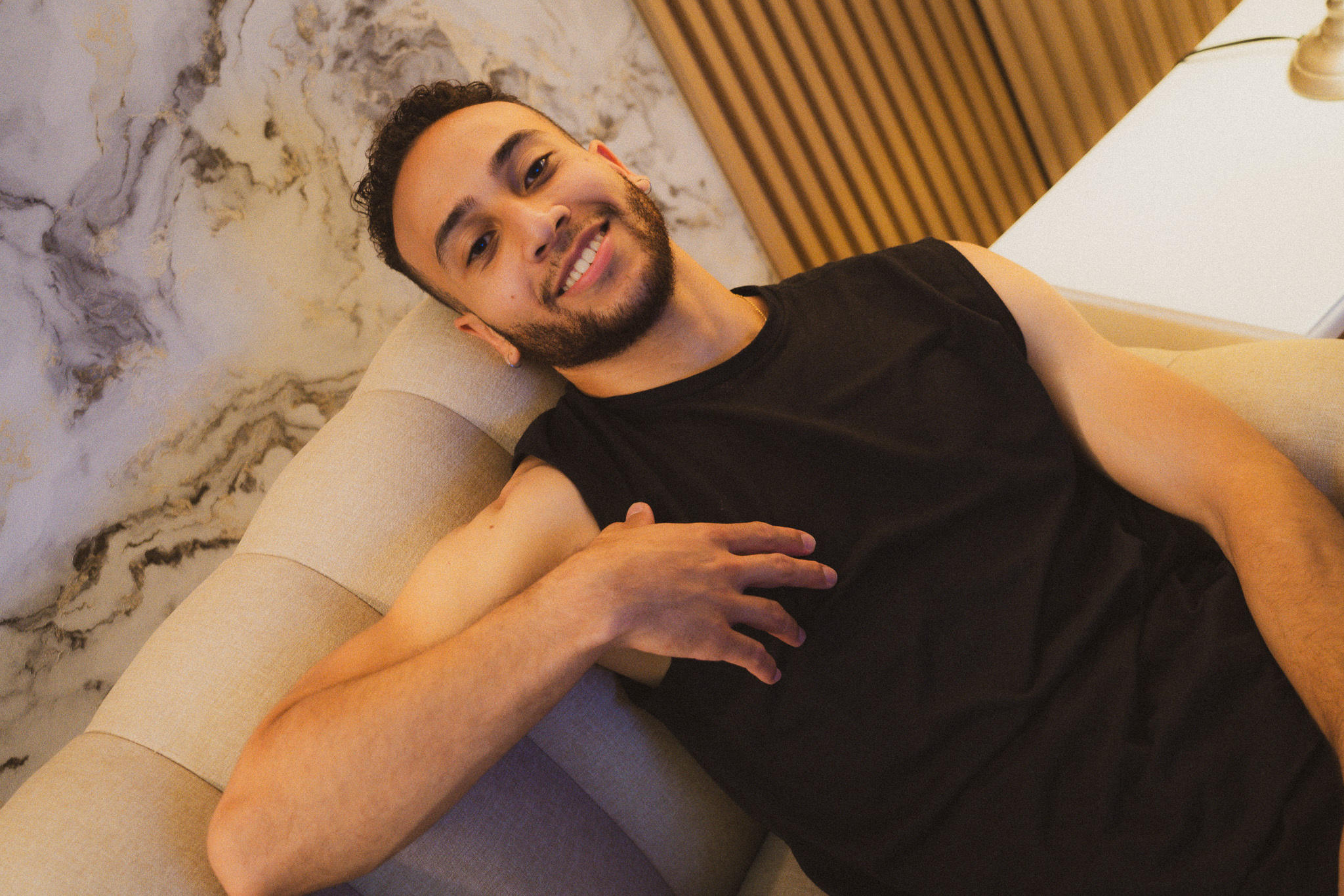 De complexión atlética, seductora tez morena y una barba irresistible. Su carisma espontáneo y divertido enciende el escenario, haciendo que cada momento brille.