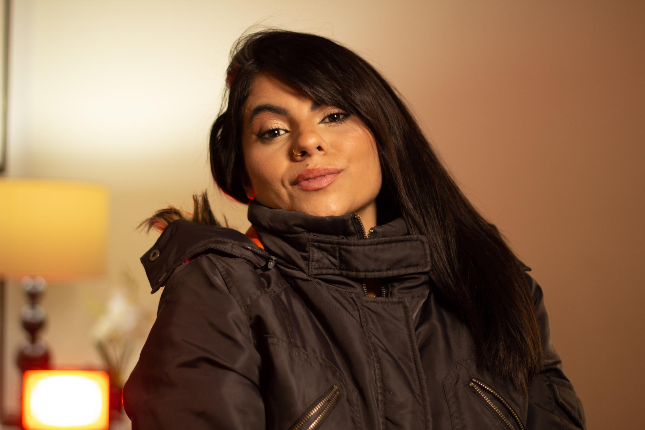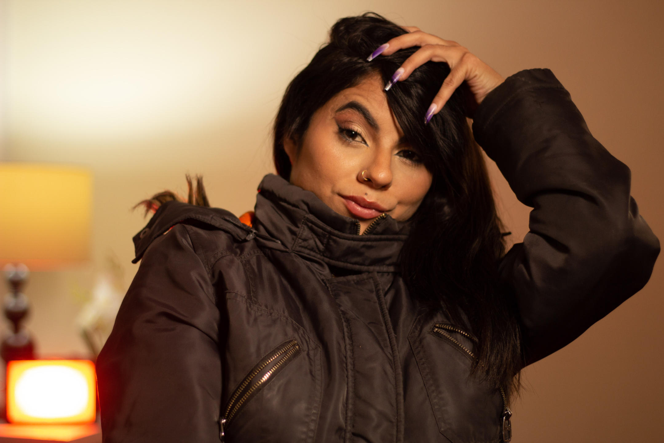 Soy una mujer latina, mi cabello es tan negro como la noche, y cae en cascadas onduladas sobre mis hombros. Mis ojos, grandes y oscuros, reflejan la pasión y la determinación que llevo dentro. A menudo brillan con curiosidad mientras absorbo todo lo que me rodea, y a veces se tornan intensos cuando me concentro en algo que me apasiona.