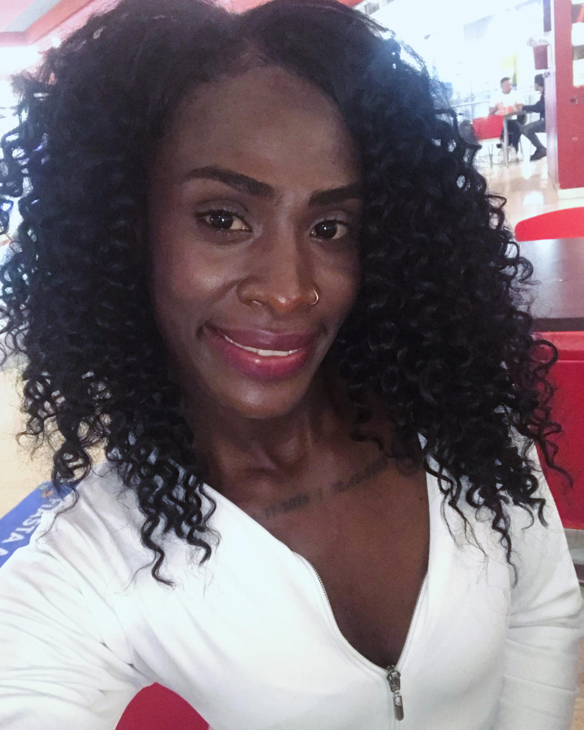 Samara est une femme qui incarne la puissance, la beauté et la joie de vivre. Originaire de Colombie, elle est une femme d’ébène, fière de ses racines et de son identité. Dès qu’on la voit, on est immédiatement frappé par sa présence magnétique : grande, athlétique, le corps sculpté par l’exercice et la discipline, elle marche avec assurance, le regard vif et le sourire lumineux. Mais ce qui attire aussi tous les regards, ce sont ses longues tresses rouges, symbole de sa personnalité audacieuse et vibrante. Elles dansent autour d’elle à chaque mouvement, comme une extension de son énergie débordante.