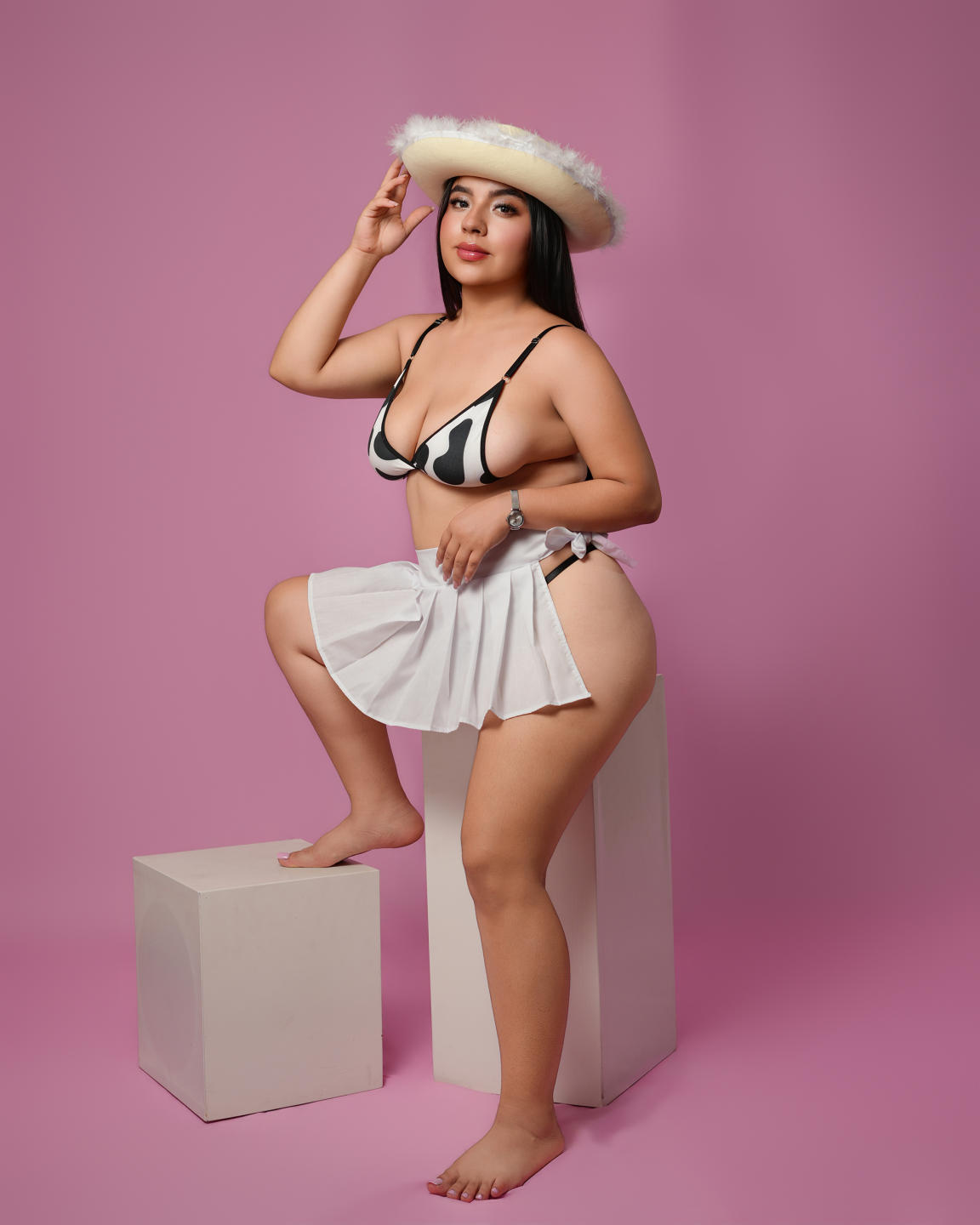 The curves of my body are like soft reliefs on a canvas, tracing a sinuous path that invites you to get lost in the voluptuousness of the female form. Each curve is a symphony of sensuality, an ode to femininity that awakens the senses and provokes the deepest desire. The generous and rounded hips slide gracefully, inviting your hands to explore their softness. The waist, a delicate line that undulates with the promise of pleasure, is the meeting point between provocation and delivery. My thighs, sculptural and wrapped in the softness of the skin, form hills that invite them to be caressed with devotion. The breasts, firm and lush, are the jewel at the center of this erotic landscape. Its whimsical shapes awaken the imagination, inviting you to discover the secrets that lie between the curves of femininity. Each curve is a statement of power and seduction, a reminder that true beauty is found in the diversity of the female form.