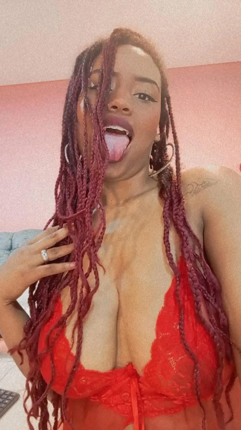 ¿Que pensez-vous de mon maquillage? Je pense que je me donne une touche de mauvaise fille jaja j'aime, mais il serait intéressant de vous voir face à face et de m'embrasser et de sentir à quel point il peut être excitant d'être près de vous deux dans la chambre, de vivre avec moi des sensations de plaisir peu à peu par votre cou et de sentir votre bite dure et dressée Pour moi, alors je vais prendre le contrôle de la situation. Le rouge me va bien, n'est-ce pas? Je me suis préparé exclusivement pour toi