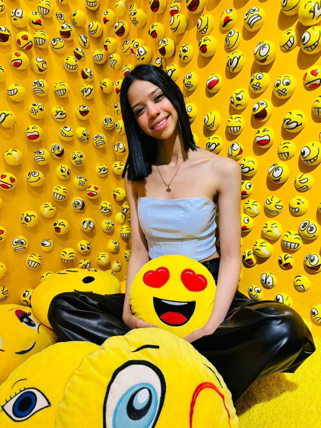 Elle est un rayon de soleil qui illumine tout ce qui l’entoure, avec une présence qui ne passe pas inaperçue. Ses yeux, d’une vive clarté, semblent contenir l’étincelle d’une joie inépuisable, reflet d’un monde plein de possibilités. Ses cheveux, doux et indisciplinés, tombent en ondulations naturelles qui encadrent son visage avec une élégance insouciante