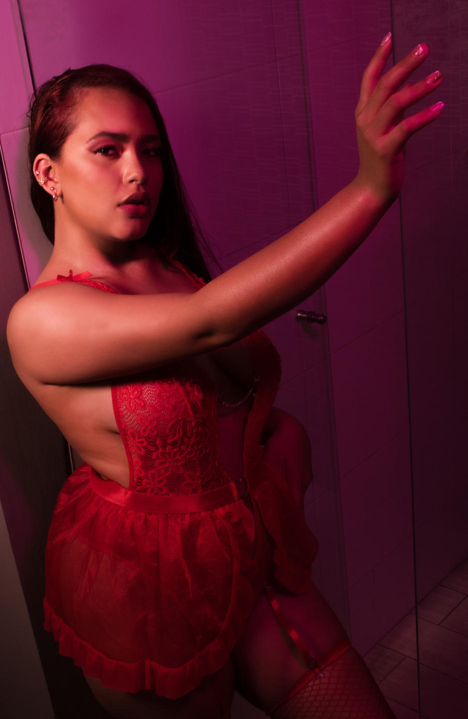 Adoro il rosso, mi scalda. Vi piace il mio look in questo colore? Scegli questo capo quando vieni a trovarmi.