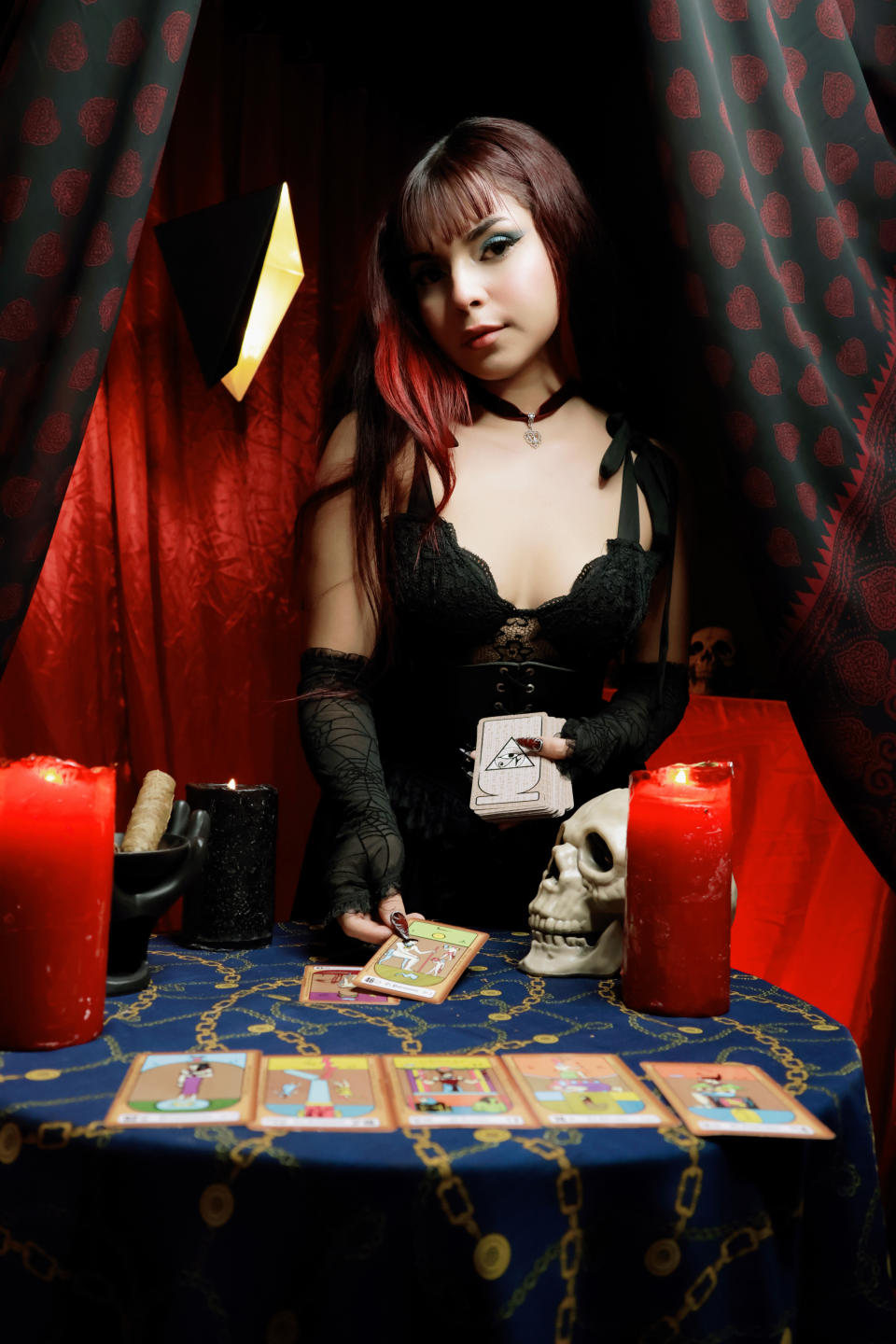 Meu estilo reflete essa faceta escura da minha personalidade. Muitas vezes opto por roupas de cores escuras, com toques de couro, rendas ou detalhes góticos. Sou atraída pela estética alternativa e gosto de brincar com a maquiagem para destacar meus traços de uma maneira mais dramática e misteriosa.