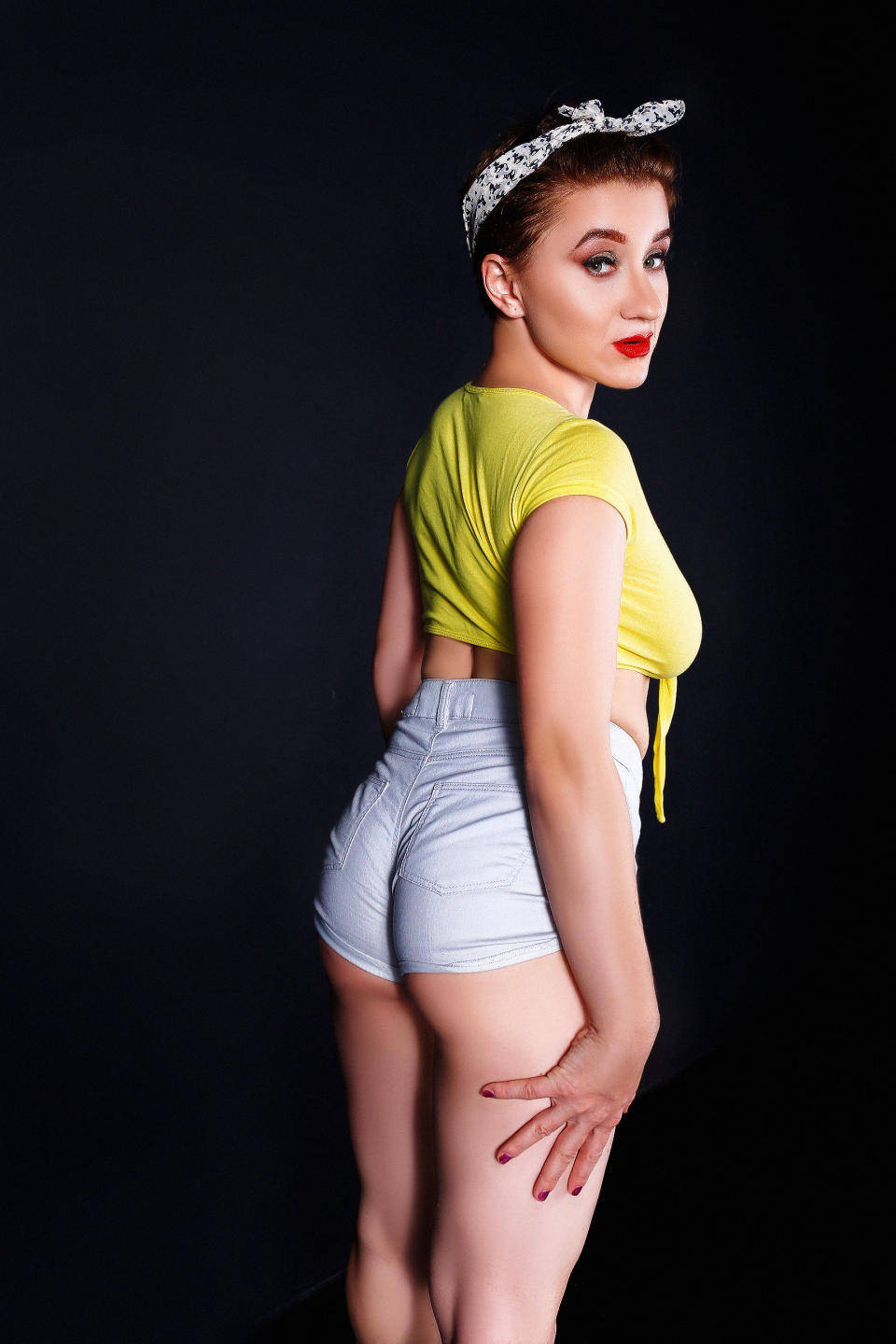 Uma mulher bonita e bonita, com formas para acordar à noite. Ginger, obrigado..