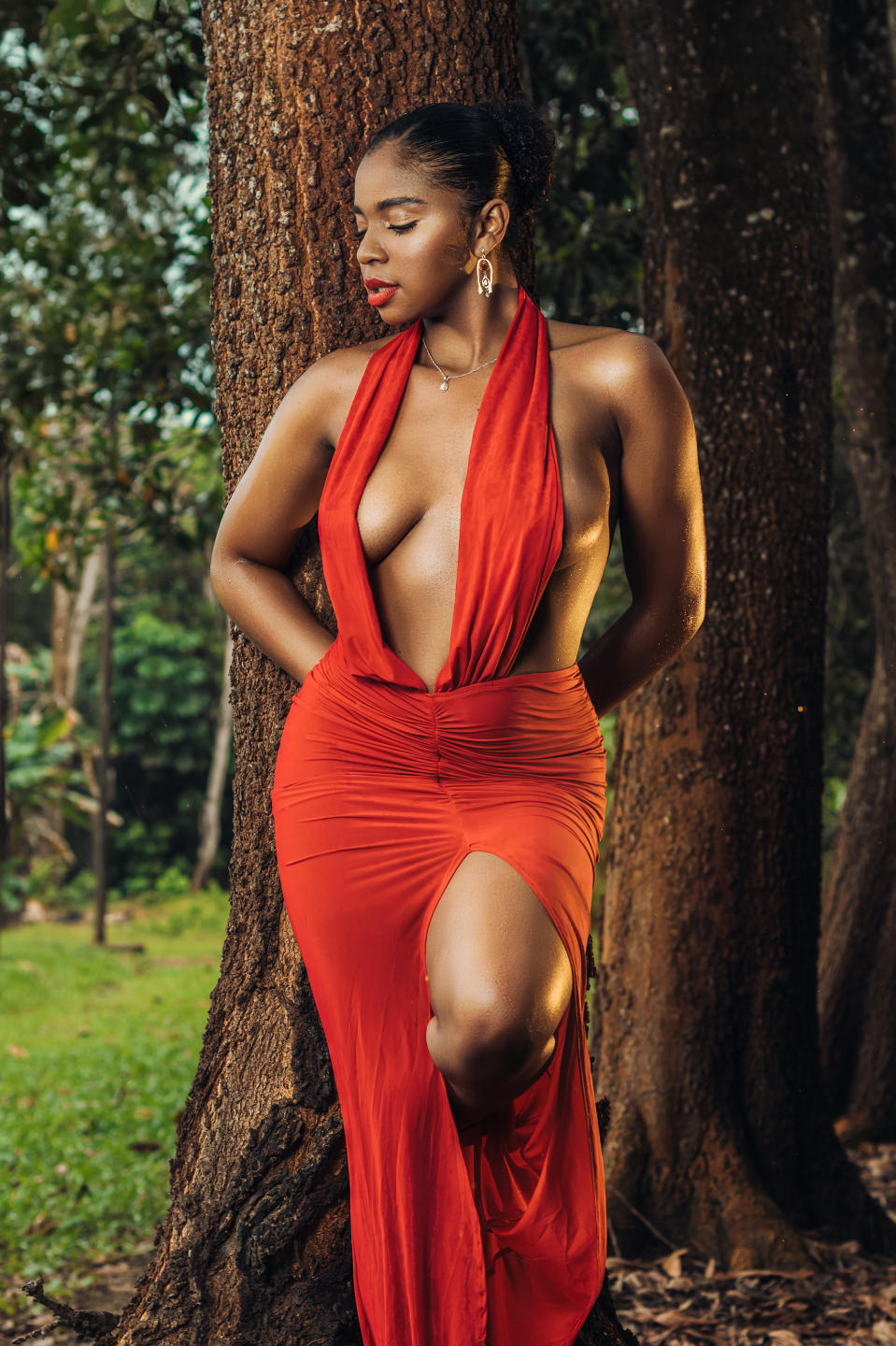 В самом сокровенном уголке природы, где свежий воздух и шепот ветра ласкает кожу, живет женщина, чья красота словно создана руками Вселенной. Каждый шаг, который вы делаете в этом раю листьев и диких цветов, является танцем изящества и чувственности. Шедевр Матери-Земли, его тело течет в гармонии с окружающей средой. Нежные изгибы ее бедр напоминают холмы, возвышающиеся вдали, а ее фарфоровая кожа сияет естественным светом, как солнечный свет, проникающий через ветви деревьев.. Когда он ходит, он пробуждает жизнь вокруг себя. Птицы поют свои песни в его честь, а бабочки танцуют вокруг него, как будто они его товарищи по игре.. Деревья протягивают свои ветви к ней в приветствие, признавая гармонию между этим существом и окружающим его природным миром.. Она воплощает суть красоты в ее самой чистой и истинной форме, человека в гармонии с землей, напоминание о чудесах природы и великолепии жизни в ее высшем выражении..