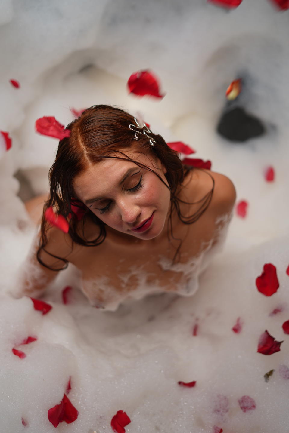 Mina ögon, djupa och laddade med magnetism, reflekterar en gnista av lust och flirt. Genom dem förmedlar jag ett överväldigande förtroende och ett löfte om nöje som inte kan ignoreras. Det är som om mina elever är fönster till en hemlig och erotisk värld som bara några få lyckliga människor kan upptäcka.