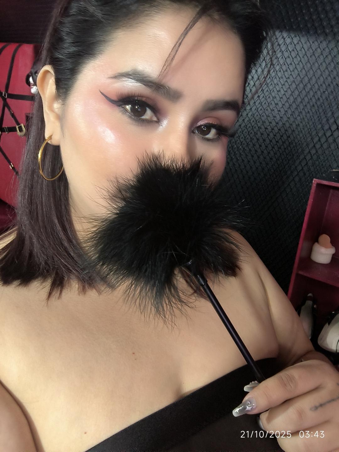 Jag är den perfekta blandningen mellan sötma av intrig och fasthet av vem som har kontroll. För när jag ger mig, gör jag det på mina egna villkor, och jag älskar känslan av att ha någon vid mina fötter, se hur lust och lydnad blandas i varje viskning, varje rörelse.. Det är inte att han söker att domineras i allt, men när jag hittar vem som vet hur man gör det, när dynamiken passar, ger jag mig själv säkerheten att det är jag som har makten att bestämma, som sätter takten. Jag gillar att de dominerar mig, ja, men alltid under mina regler. Eftersom i mitt mysterium finns det också styrka, och i min mildhet, en fast hand som vet exakt vad han vill.