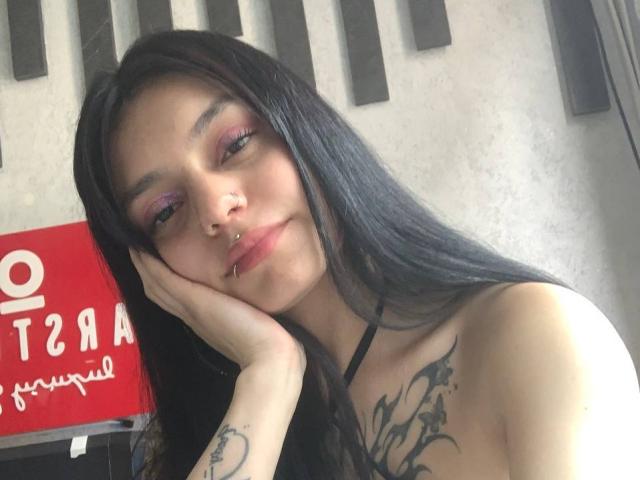 ¡Titta snygging, här är jag i min säng med blå lakan, visar upp min svarta bikini och min sexiga tatuering! Mina lekfulla ben och mitt ängel ansikte retar dig under det mjuka ljuset, med min tatuerade hand som vinkar dig. Vågar du?