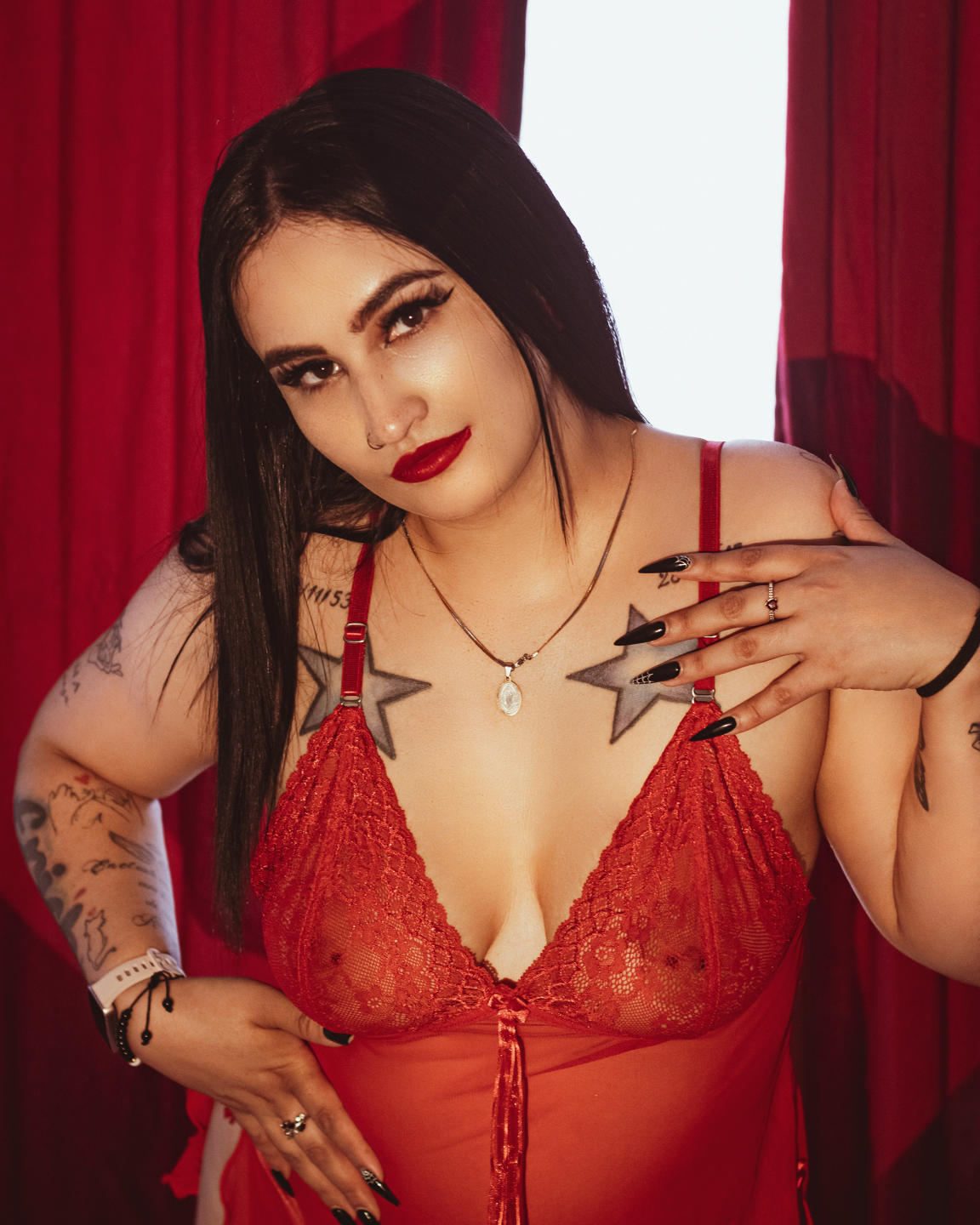 Ett annat alternativ som du kommer att älska: jag i provocerande röda underkläder, den som belyser min mjuka och garvade hud. Knäböjande i mitten av en king size-säng med silkeslakan upprullade. Mina läppar bitna av begär, bönfallande ögon upp mot dig, väntar på din order. Den röda spetsen täcker knappt det väsentliga, transparenser som låter dig se mina bröstvårtor härdade av upphetsning. Jag böjer mig lite, erbjuder mig själv, redo för dig att ta mig som du vill. ¿Vill du att jag ska be dig mer? Berätta för mig och jag gör det med darrande röst av förväntad glädje.