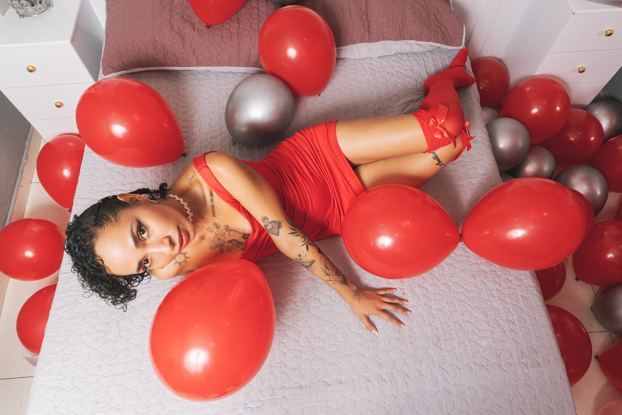 "Jag låter mig svepas in för stunden, mjuk och djärv, som en suck som provocerar. Varje detalj av min kropp är en subtil kallelse, en inbjudan att gå vilse i begär utan återvändo".