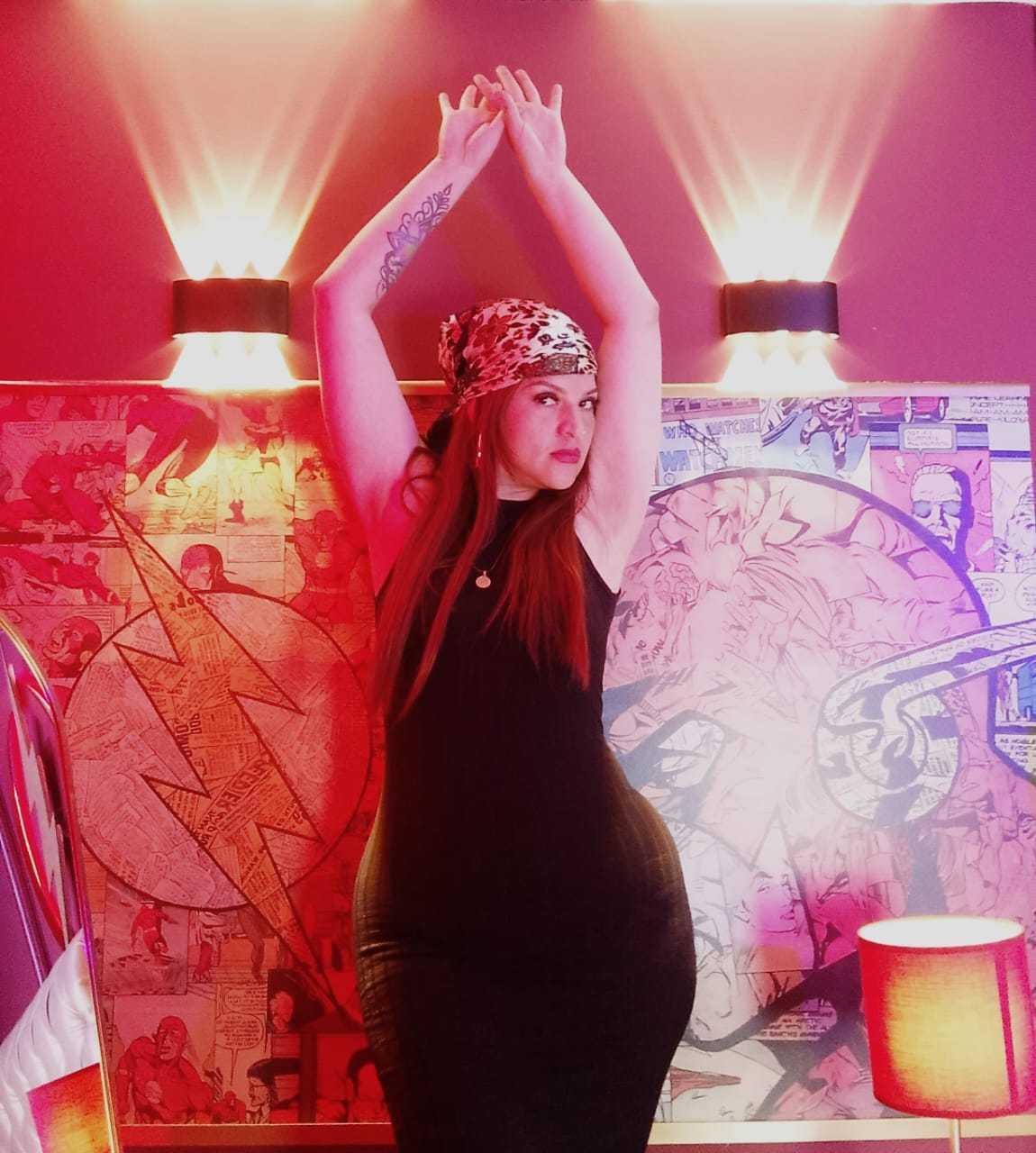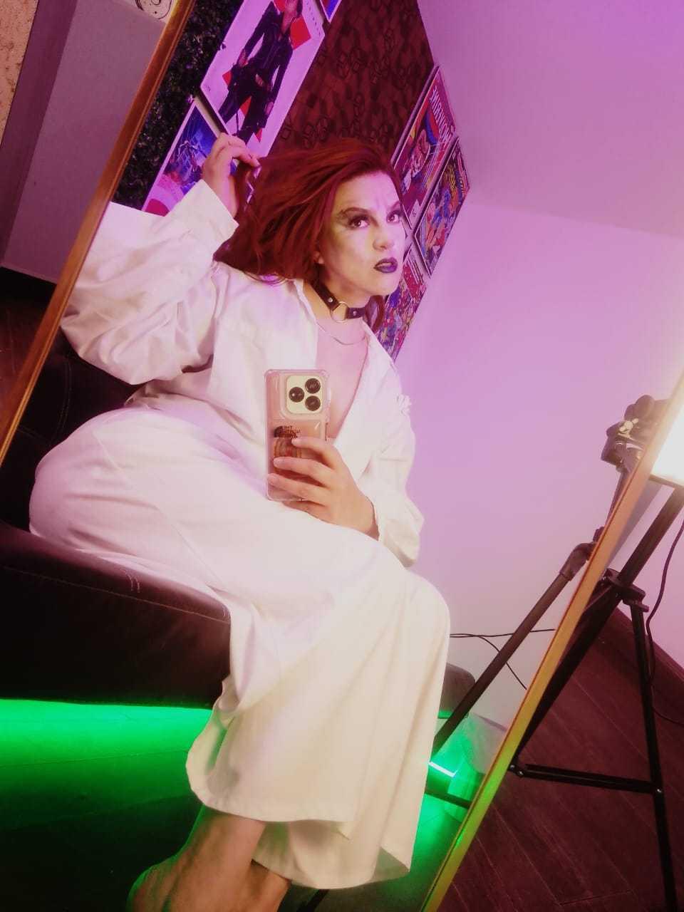 Scenen börjar i ett rum som är svagt upplyst av det varma ljuset från en lampa som står på sängbordet. Hon dyker långsamt upp i ramen, klädd i en lätt morgonrock som knappt passar på axlarna. Hennes röda hår reflekterar gyllene reflektioner under ljuset och faller som en mjuk eld runt hennes ansikte. Hon sa ingenting i början. Hon bara ler medbrottsligt, som om hon visste en hemlighet som hon är på väg att avslöja. Hon sitter på sängkanten, korsade långsamt benen och lekte med tygkanten, utan att rusa, som om varje rörelse beräknades för att väcka nyfikenhet. Stirrar, hon inbjuder dig att stanna där, att observera. Hennes händer rör sig långsamt över nacken, nyckelbenet, tills de landar på tyget som täcker hennes hud. Hon lutar sig framåt, som om hon viskade något, och viskar att den verkliga magin sker när någon vågar stanna till slutet av berättelsen.. Det är ett ögonblick som blandar mystik och lust: en scen där det som föreslås väger mycket tyngre än det som visas.