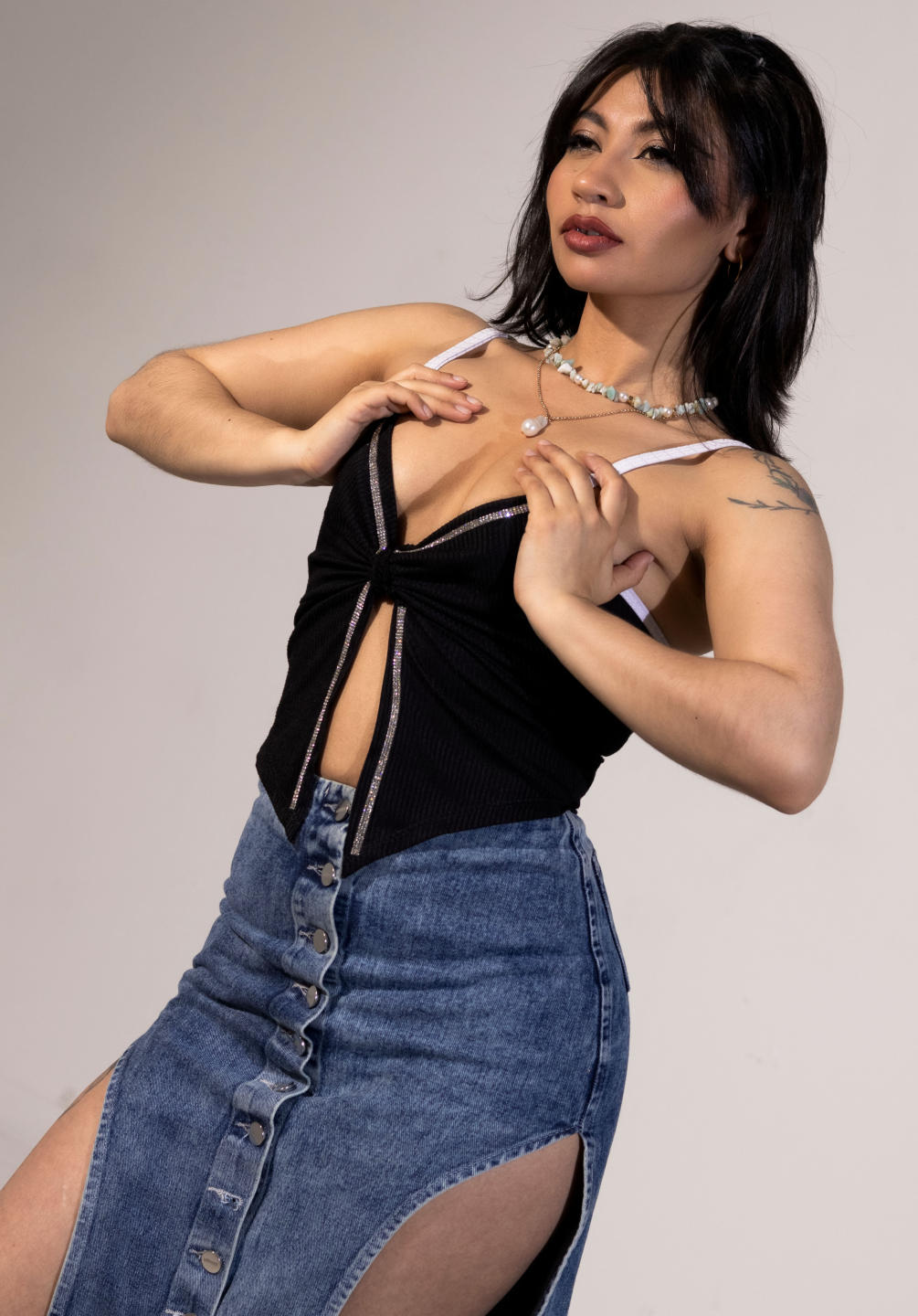 Selene León is an outgoing and charismatic woman. Her contagious energy makes her the life of any gathering, always ready to start conversations and make others feel at ease. She is kind, attentive, and her warm personality makes her easily approachable. In addition to her friendliness, Selene exudes a natural sensuality that effortlessly draws attention.