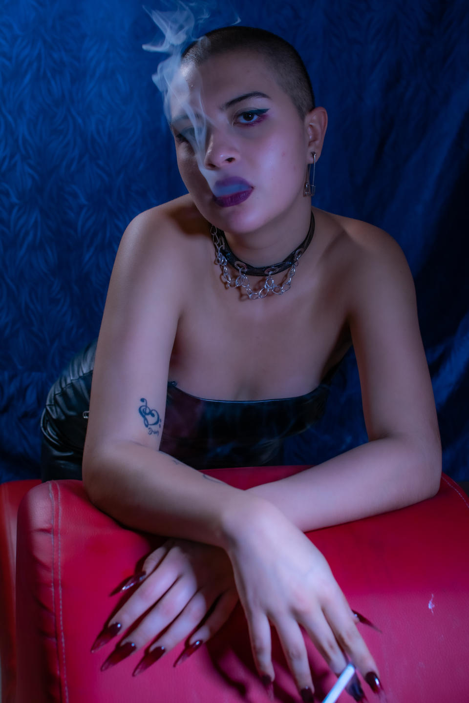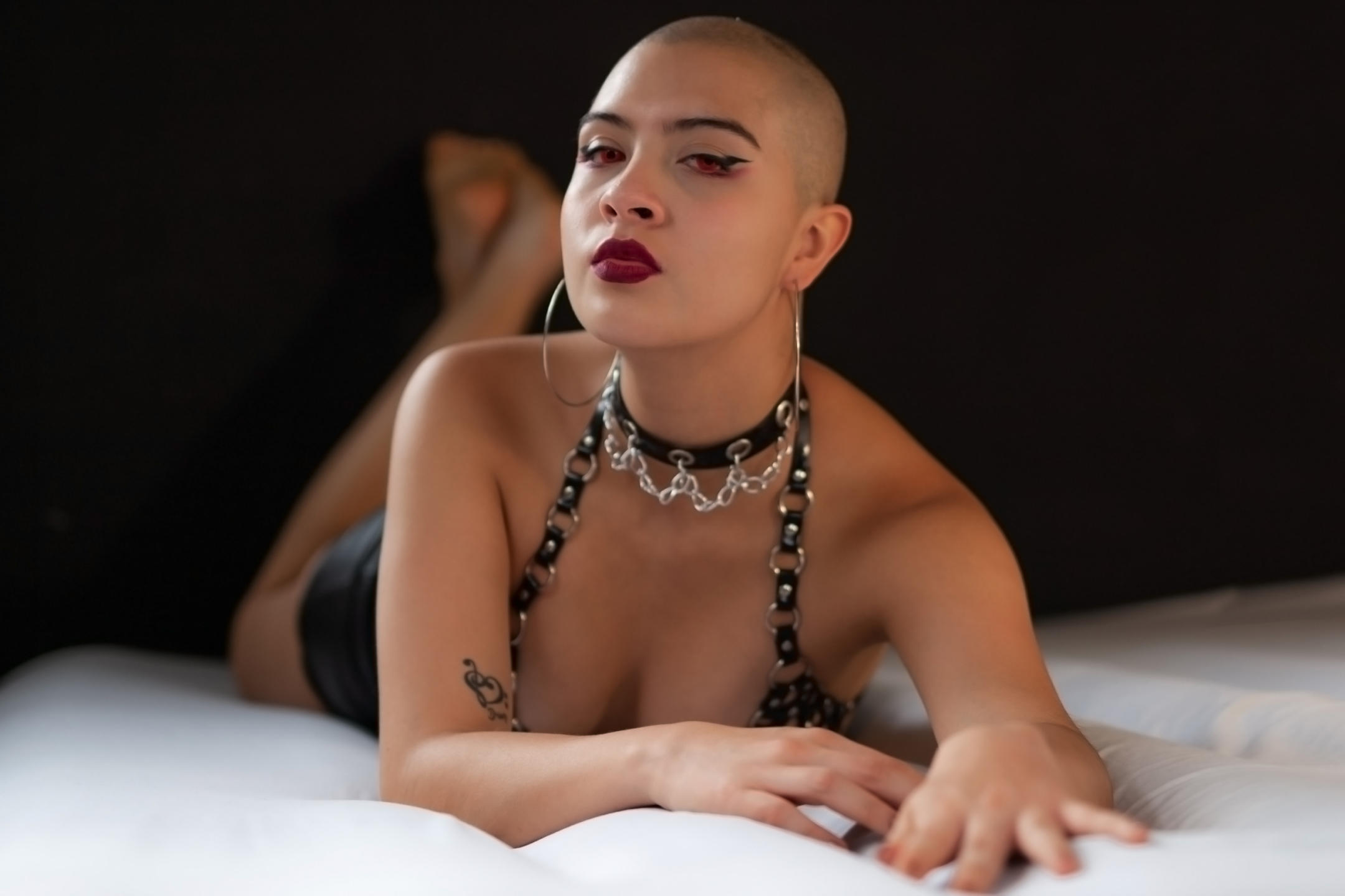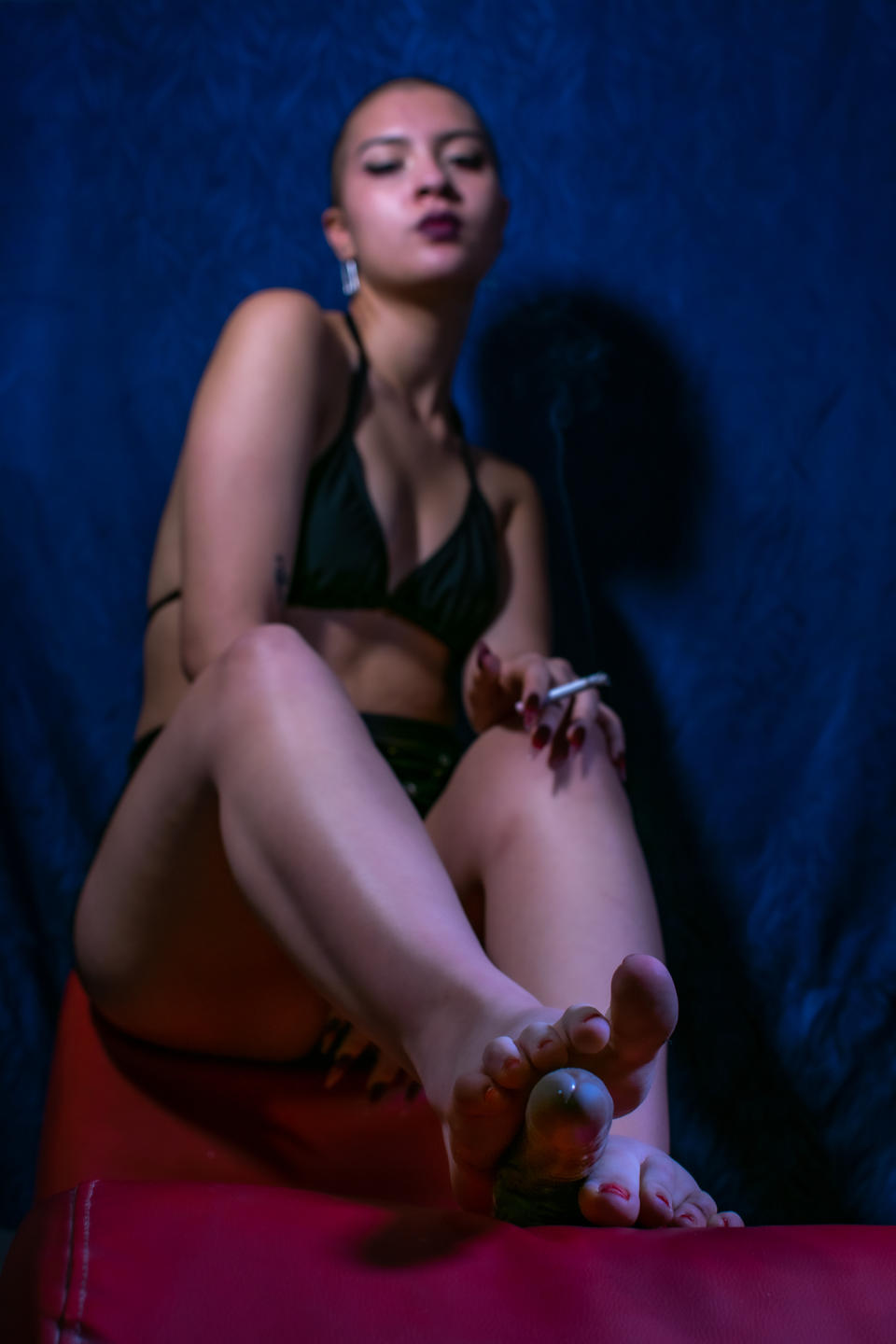 fetish for feet, fire, suffocating, for dirt, for money, for heels, chains, latigos, bondage, harnesses, boots, stockings, cigarettes, cages, sumissive men, tarvestis men, latex, leather, tattoos long nails, by the gotic style.